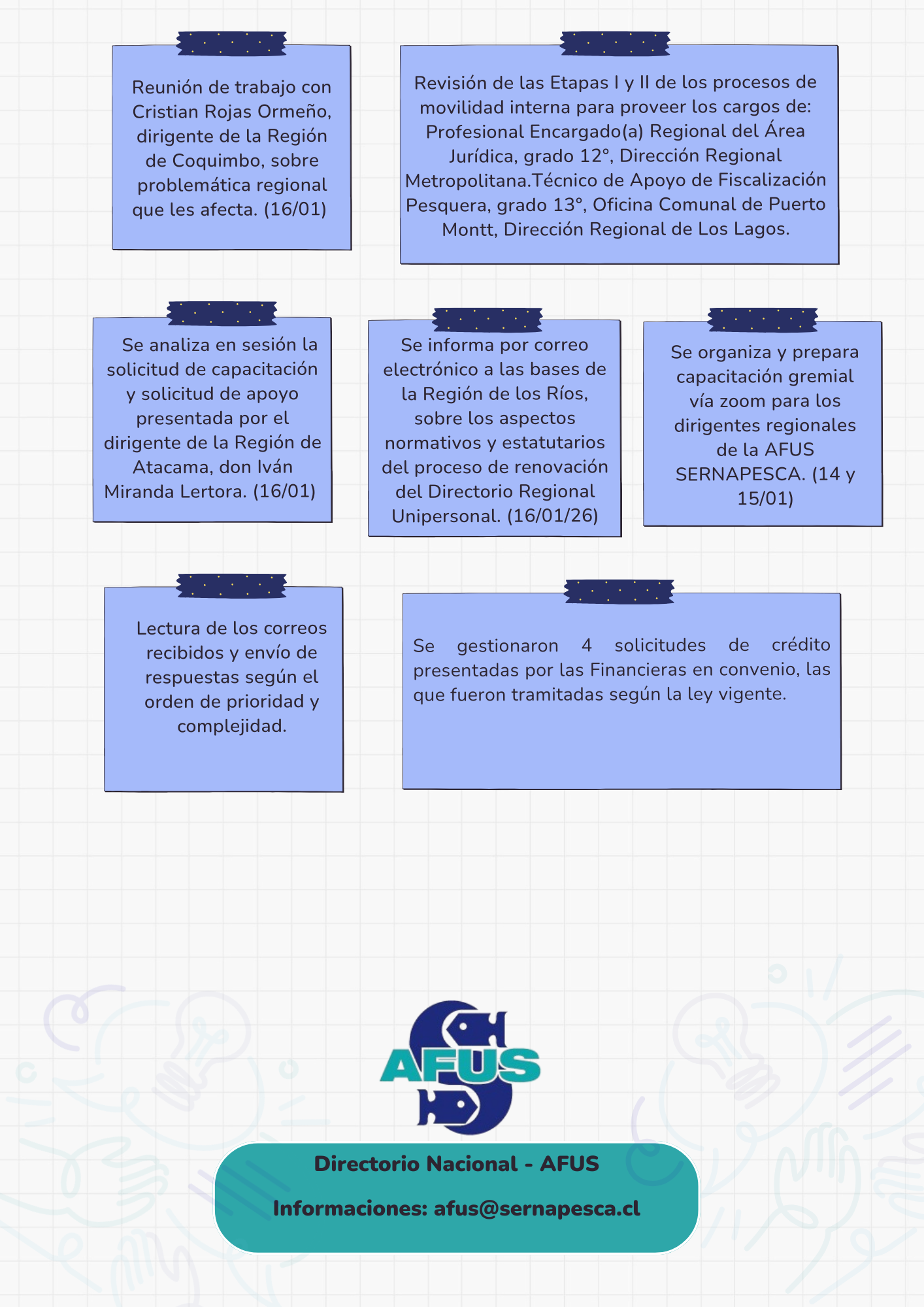 Actividad Nacional Actividad Nacional Actividad Nacional TU AFUS SEMANAL - EN QUÉ ESTAMOS Semana del 12 al 16 de enero 2026 26-01-2026 17:55